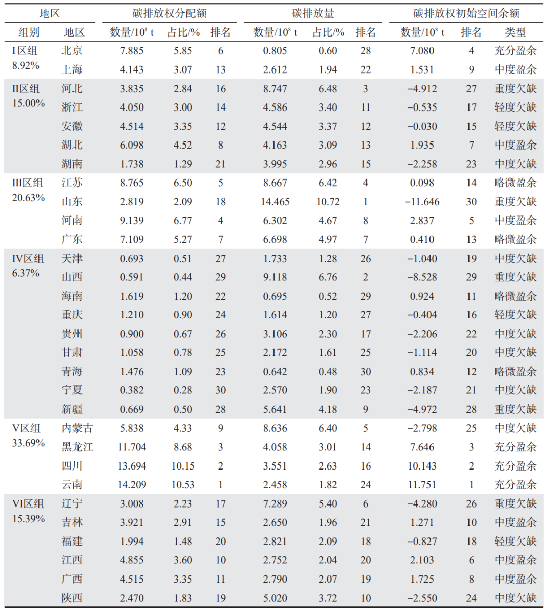 3.1中國碳排放權(quán)區(qū)域分配及初始空間余額